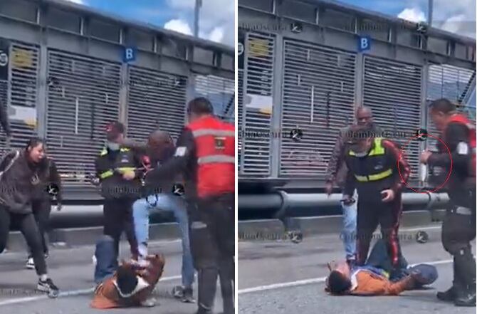 En el video se observa el momento en el que la víctima le da patadas al presunto ladrón en la cabeza, mientras este está en el suelo en medio de dos funcionarios de TransMilenio.