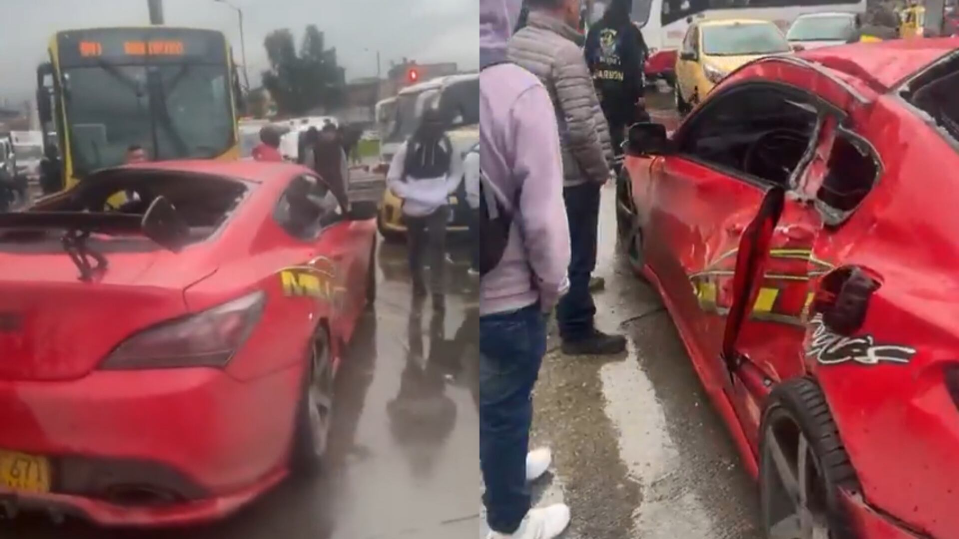 Todo parece indicar que el estrellón fue ocasionado por el cambio de luz de un semáforo. En redes sociales publicaron videos de cómo quedó el vehículo y el articulado, dejando claramente afectado el carro deportivo.