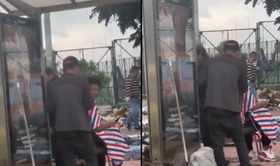 En las imágenes, se observa a dos hombres que, con total tranquilidad, montan una improvisada barbería a la intemperie. Uno de ellos viste una bata típica de salón de belleza, mientras el otro sostiene unas tijeras, una escoba y una silla propia para realizar el corte. Ambos actúan con naturalidad, sin parecer perturbados por el entorno o por la persona que decidió grabarlos.