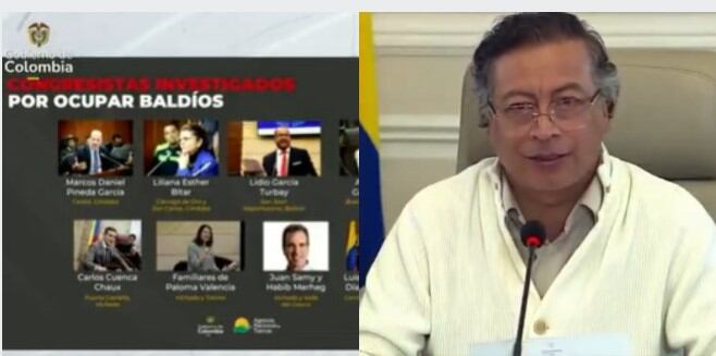 Durante el consejo de ministros de este martes 27 de mayo, el Gobierno del presidente Gustavo Petro dejó entrever la existencia de investigaciones en curso contra varios congresistas por presunta ocupación irregular de predios baldíos. El tema fue abordado en el contexto de la reforma agraria, uno de los pilares de la administración actual, y en vísperas del paro nacional convocado en rechazo a algunas de las reformas propuestas.
