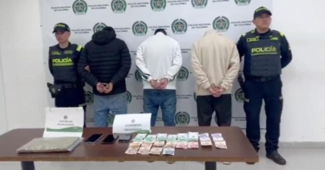 La Policía de Bogotá capturó a tres personas por tener en su poder un bolso 500 gramos de marihuana y dinero en efectivo producto de la venta de estos estupefacientes en uno de los parques de la localidad de Usaquén, al nororiente de Bogotá.