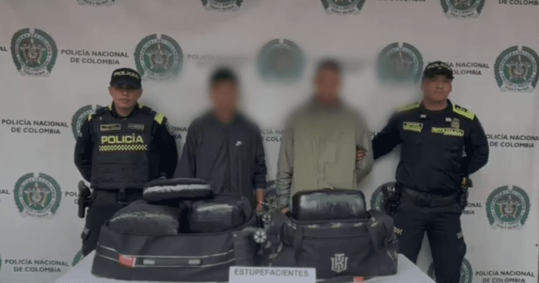 La Policía de Bogotá, en las últimas horas en la localidad de Rafael Uribe al suroriente de Bogotá, logró capturar en flagrancia a dos hombres por el delito de tráfico, fabricación o porte de estupefacientes, luego de ser descubiertos transportando 20 kilos marihuana que se encontraba oculta en ropa que era transportada en dos maletas.