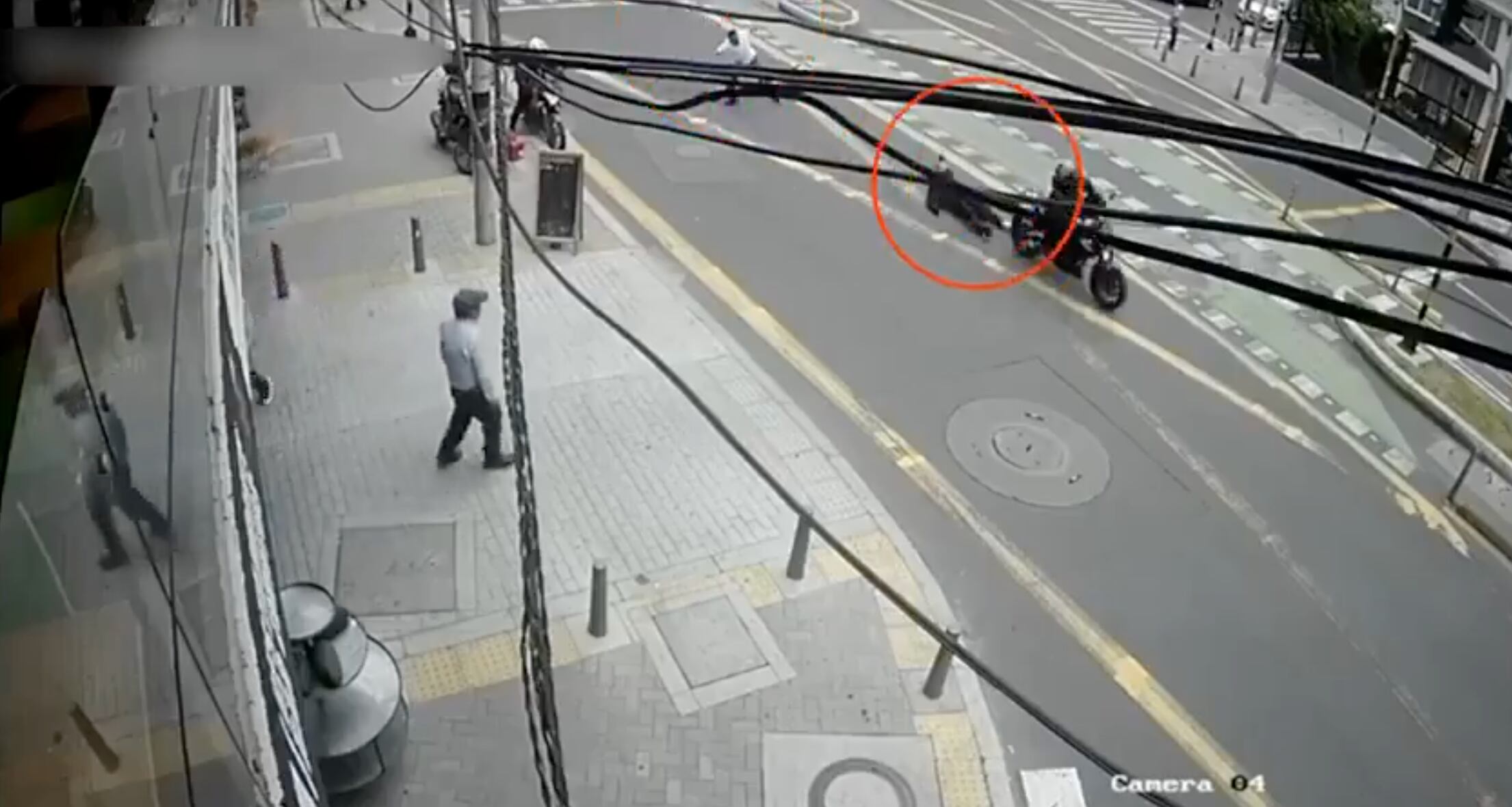 Según imágenes captadas por las cámaras de seguridad de la zona, el descaro de los asaltantes fue tal, que cometieron el hecho a plena luz del día. Y justo al emprender la huída, mediante una patada, la víctima logró que la moto perdiera el control y cayera sobre la vía.