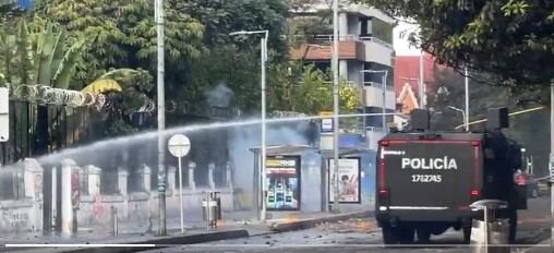 Mojados con chorros de agua a presión las autoridades dispersaron a manifestantes ProPalestina en Bogotá
