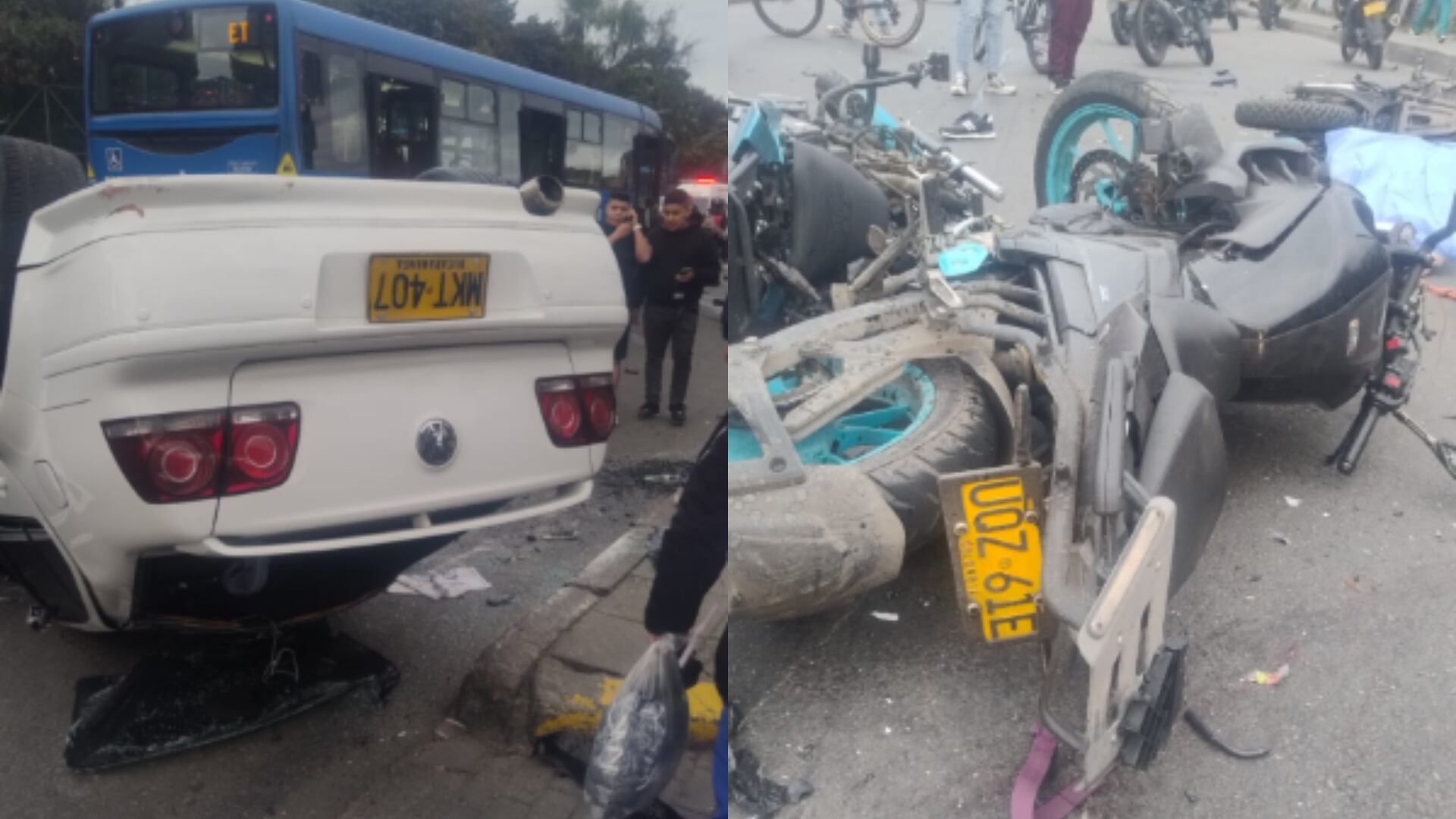 En la mañana de este viernes 31 de octubre, un fuerte accidente de tránsito ocurrió en la localidad de Engativá, más exactamente en la calle 63 con carrera 98, sentido Oriente - Occidente, que involucra a dos motociclistas y un automóvil.