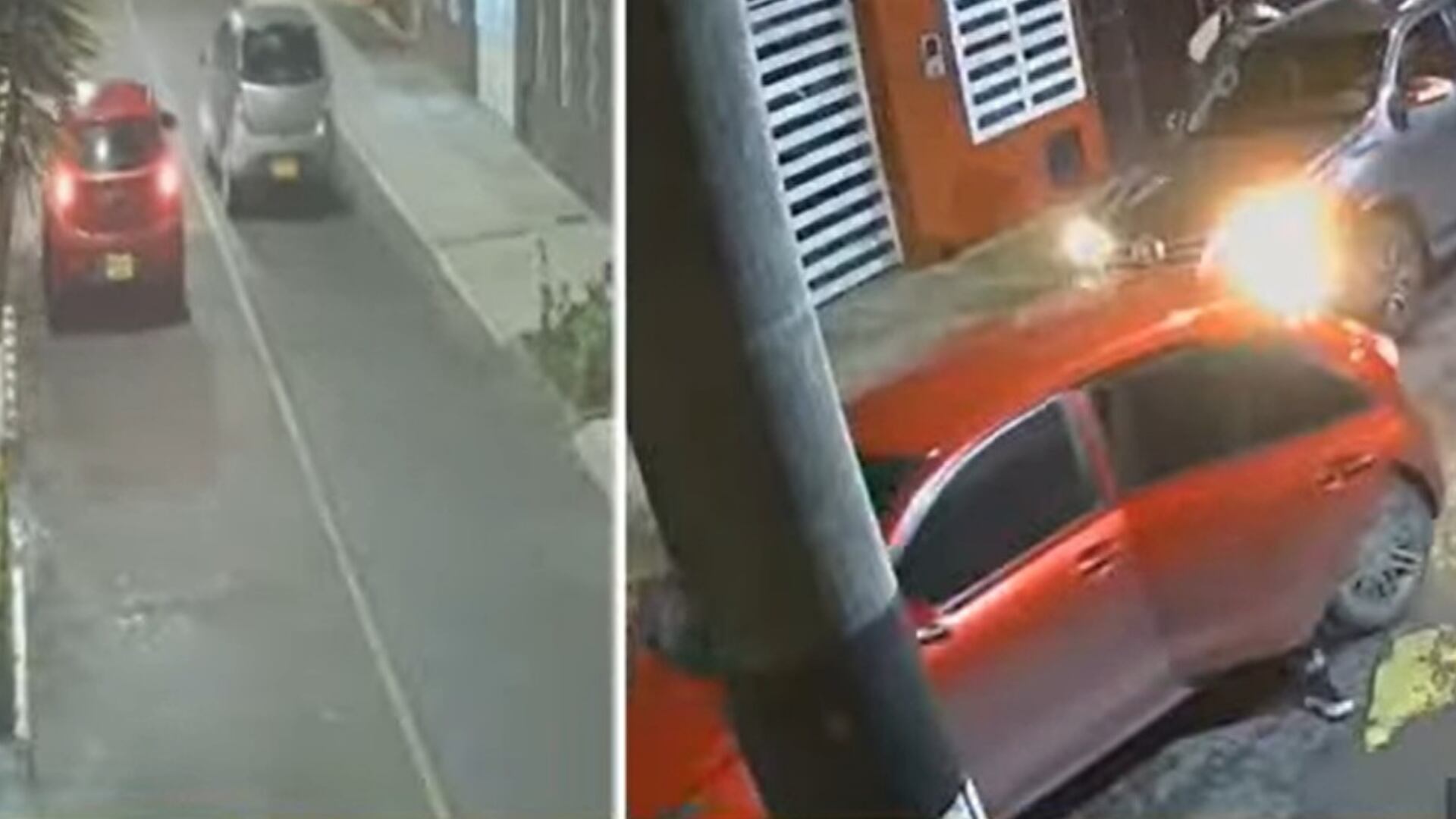 El Ojo de la Noche reveló como en uno de los casos, donde una mujer fue la víctima, tres hombres que usan tapabocas, se bajan de un vehículo rojo, poco después que una mujer ingresó al parqueadero de su vivienda.