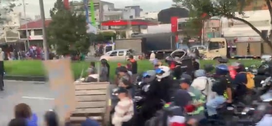 TransMilenio informó que “Debido a las manifestaciones ajenas a la operación en la zona, se presenta paso restringido intermitente para los buses de TransMilenio que pueden generar retrasos en algunos servicios”.
