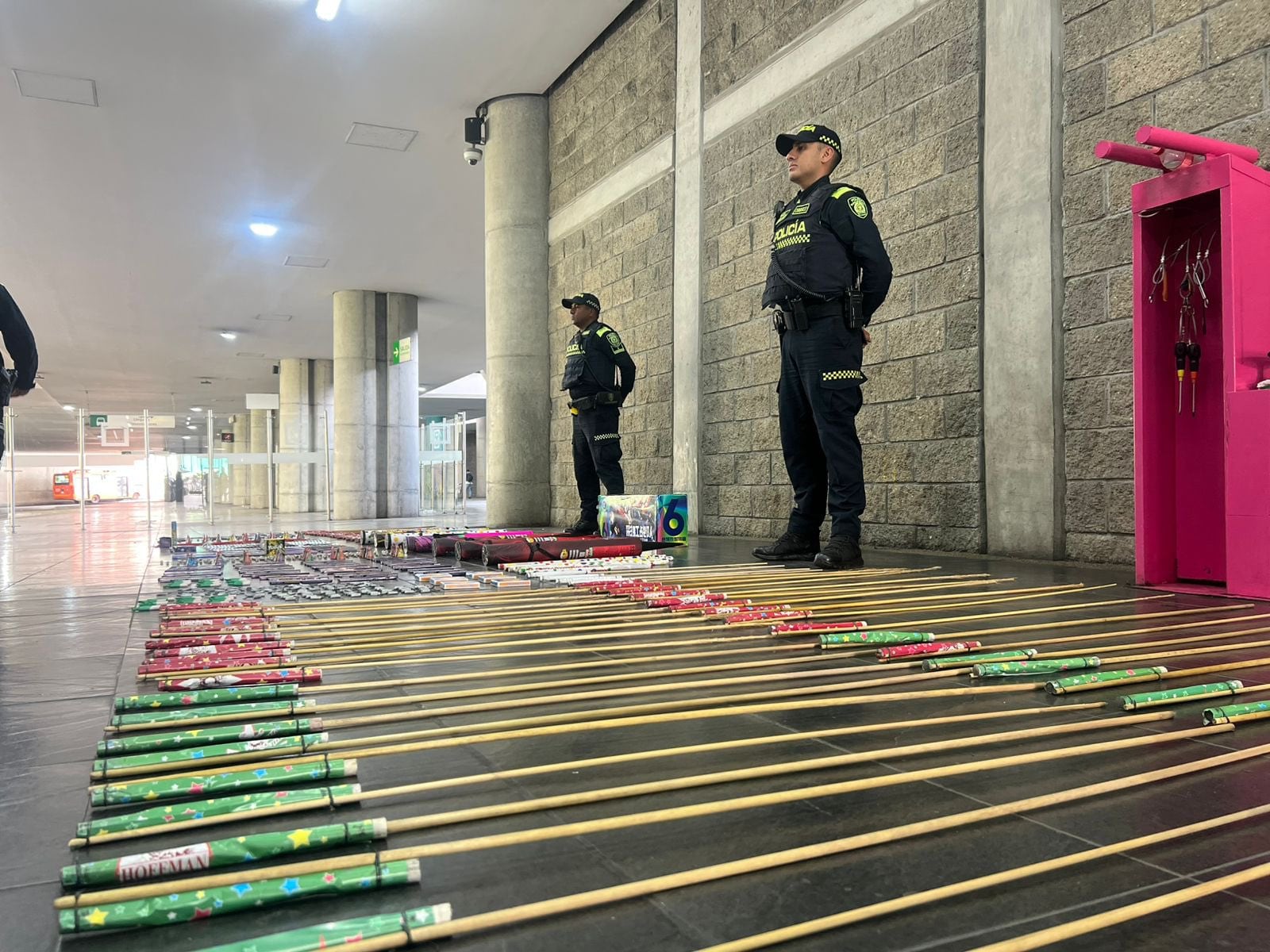 El operativo, impulsado por denuncias ciudadanas, permitió identificar a seis personas que portaban de forma artesanal una variedad de artículos de alta peligrosidad, entre los que se encontraban voladores, martillos, totes, chispitas, volcanes y bengalas, en total fueron 1.440 unidades de pólvora. De acuerdo con el coronel Norberto Caro, comandante de guarnición de la Policía Nacional, estos elementos eran transportados en los buses del sistema, representando un riesgo directo para los miles de usuarios que transitan diariamente por estas instalaciones.