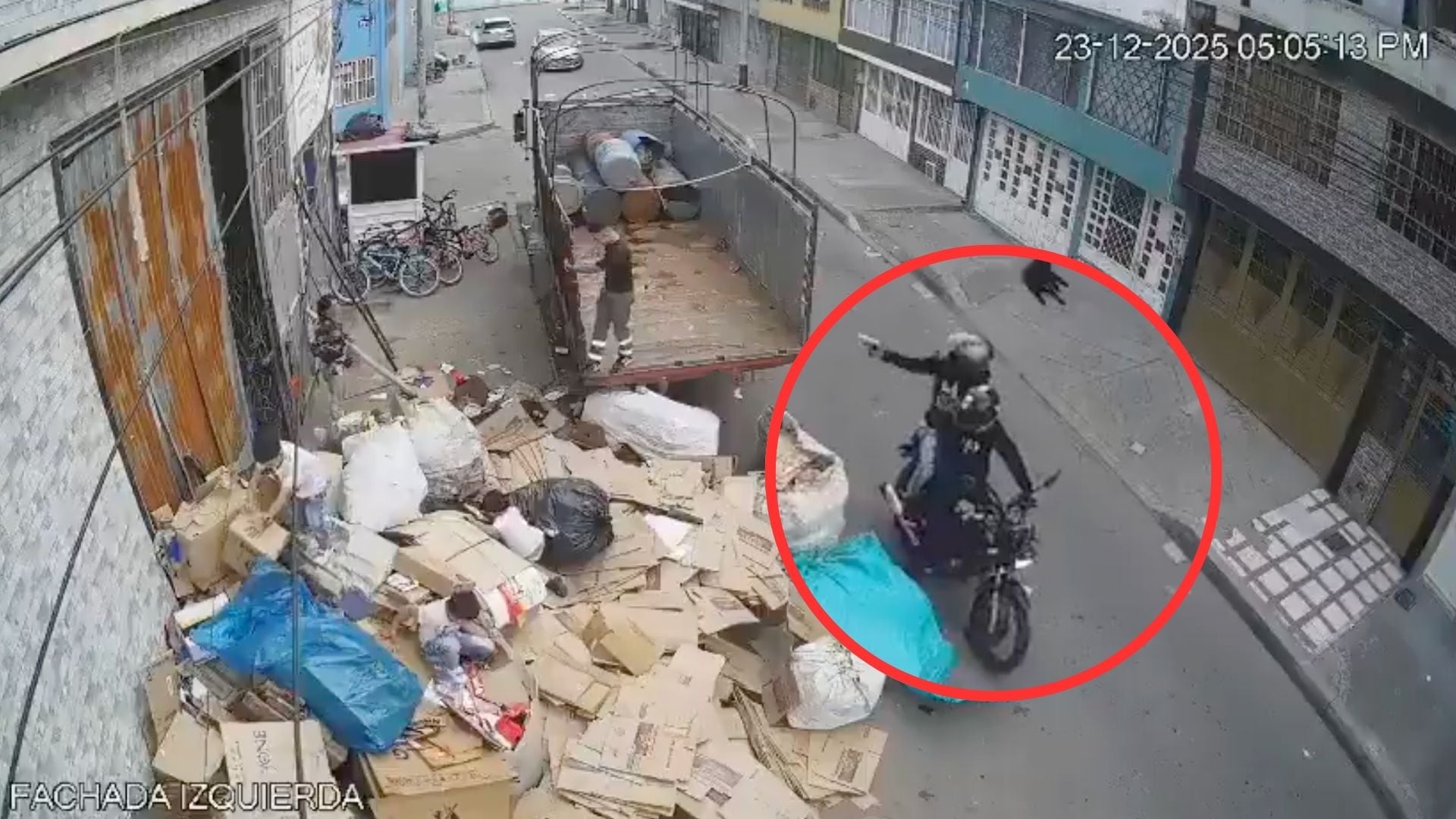El joven estaba sobre la plataforma de un camión, organizando pacas de cartón para su despacho. Según las imágenes de vigilancia, dos hombres a bordo de una motocicleta se aproximaron al lugar.