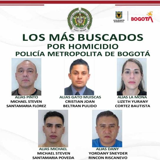 La Policía Metropolitana de Bogotá y la Secretaría de Seguridad presentaron oficialmente el cartel de los cinco delincuentes más buscados por los delitos de homicidio agravado y hurto calificado en la capital. Se trata de los integrantes de la estructura criminal conocida como ‘Los Egolios’, señalados de perpetrar al menos seis atracos a vehículos de valores, cuyo botín conjunto asciende a los 35.000 millones de pesos colombianos.