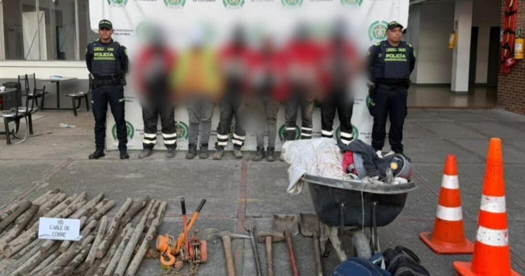Durante el procedimiento se les encontró en su poder varios elementos como conos, picas y palancas, además de unas bolsas y sacos en los que transportaban cerca de 36 metros de cable cortado, el cual estaría avaluado en 25 millones de pesos.