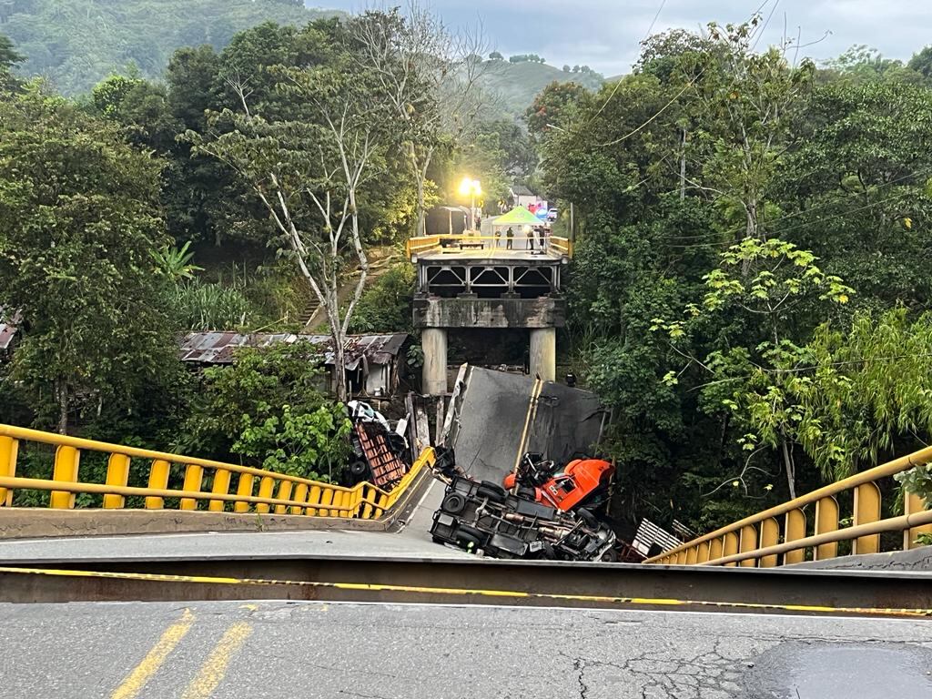 De acuerdo con el gobernador del departamento del Quindío, Roberto Jaramillo Cárdenas, en el momento en el que colapsó el puente, iban transitando dos vehículos de la Policía, dos tractocamiones y un vehículo particular, los cuales se fueron al río junto con la gran estructura de cemento.