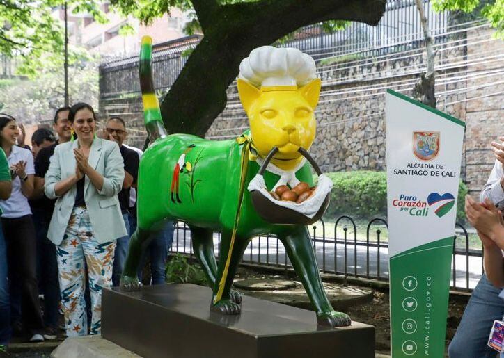 Una nueva escultura se suma al programa de arte urbano que tiene la ciudad en uno de los costados del Río de Cali, ‘Las gatas del Río de la Cámara de Comercio de Cali’.