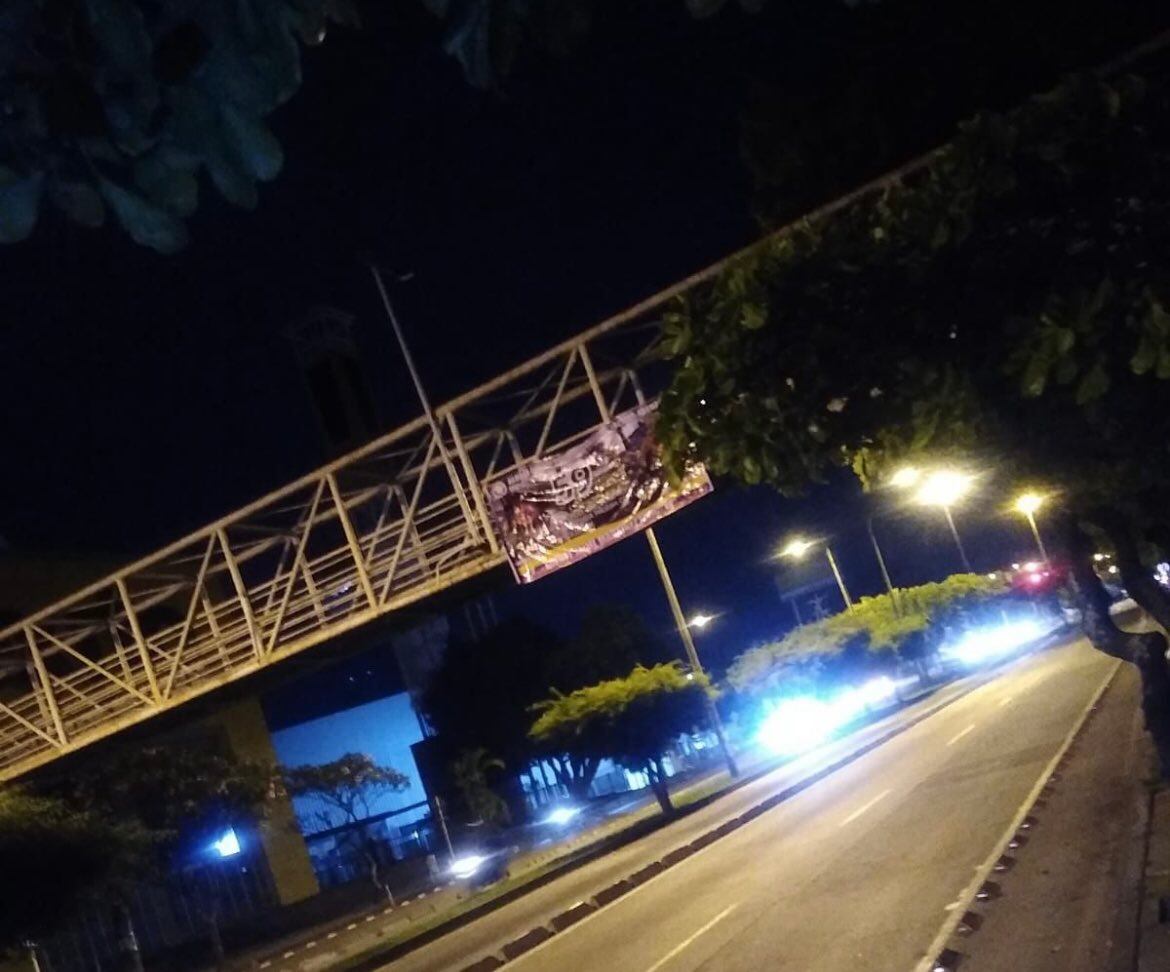 Luego de horas, la pancarta fue retirada. Se espera un pronunciamiento de la Policía Metropolitana de Cali.