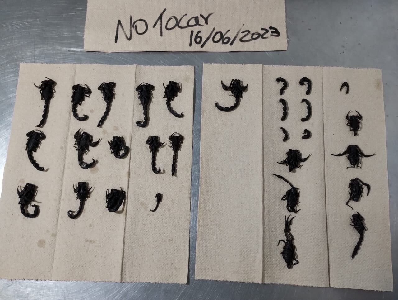 Las autoridades se encontraban realizando controles en la zona céntrica de la ciudad de Cali, en el barrio San Pedro, en conjunto con el grupo de Protección Ambiental y Ecológica, cuando sorprendieron a un hombre que tenía en su poder a 116 escorpiones de cola negra, los cuales poseen un veneno neurotóxico, que podría causar la muerte de una persona.