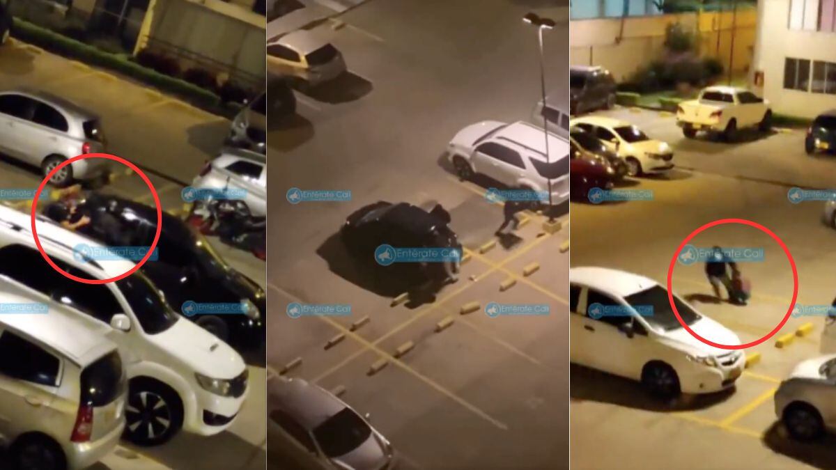 En un video que se difundió por redes sociales se pudo observar el momento en el que guardas de seguridad del conjunto residencial se enfrentaron a disparos en contra de unos criminales que pretendían robar artículos dentro de un vehículo.