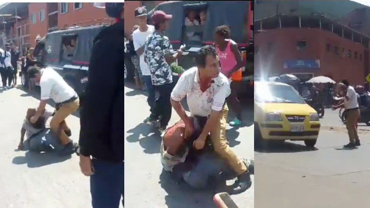 La situación tuvo lugar en el centro de Cali, por la calle 10, en el barrio Fray Damian, cerca a donde quería la nueva sede de la Fiscalía General de la Nación de la ciudad y quedó registrada en un video que posteriormente se compartió en redes sociales.