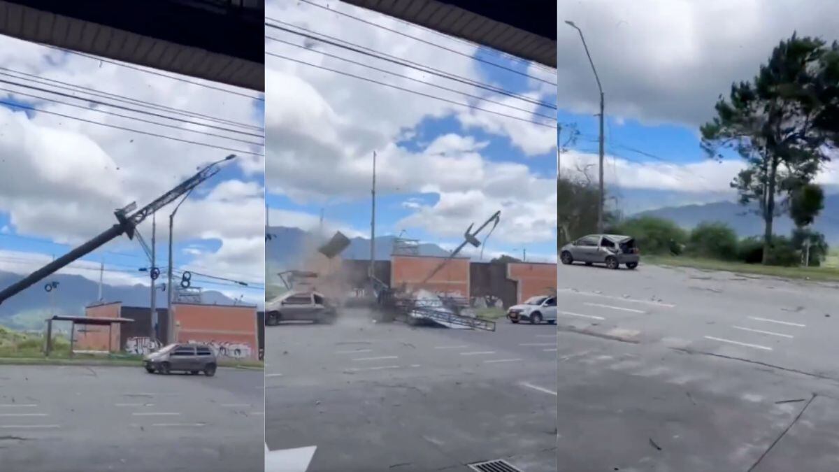A través de un video difundido en redes sociales, se pueden observar los fuertes vientos que cobijan al departamento. Tan fuertes que una enorme valla publicitaria no pudo sostenerse y cayó sobre un vehículo.