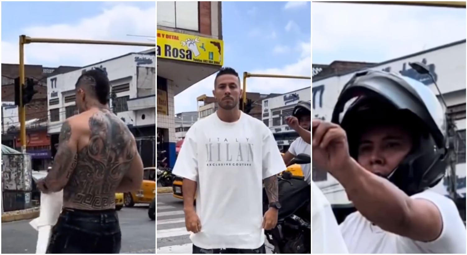 En el video se ve que el hombre que estaba modelando la ropa estaba en la mitad de una calle mientras lo grababan. Pero en ese instante un sujeto en una moto vio la oportunidad y bajó la velocidad para acercarse a su víctima, que estaba concentrada en la sesión de fotos.