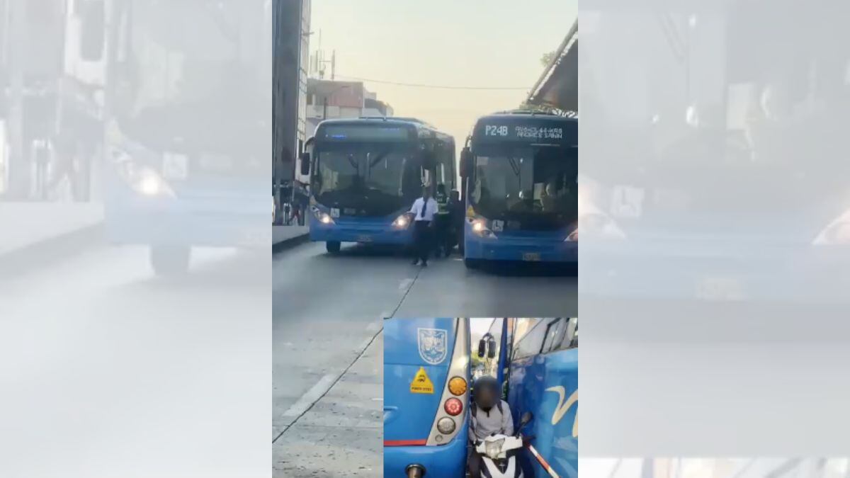 A pesar de las estrictas medidas de movilidad que han implementado las autoridades de la nueva alcaldía para que se respeten los carriles exclusivos del servicio de transporte masivo, MÍO, los ciudadanos continúan cometiendo imprudencias. Así se registró en un nuevo video que fue compartido a través de redes sociales en el que se puede observar a un motociclista quedar atrapado en la mitad de dos buses del MÍO.