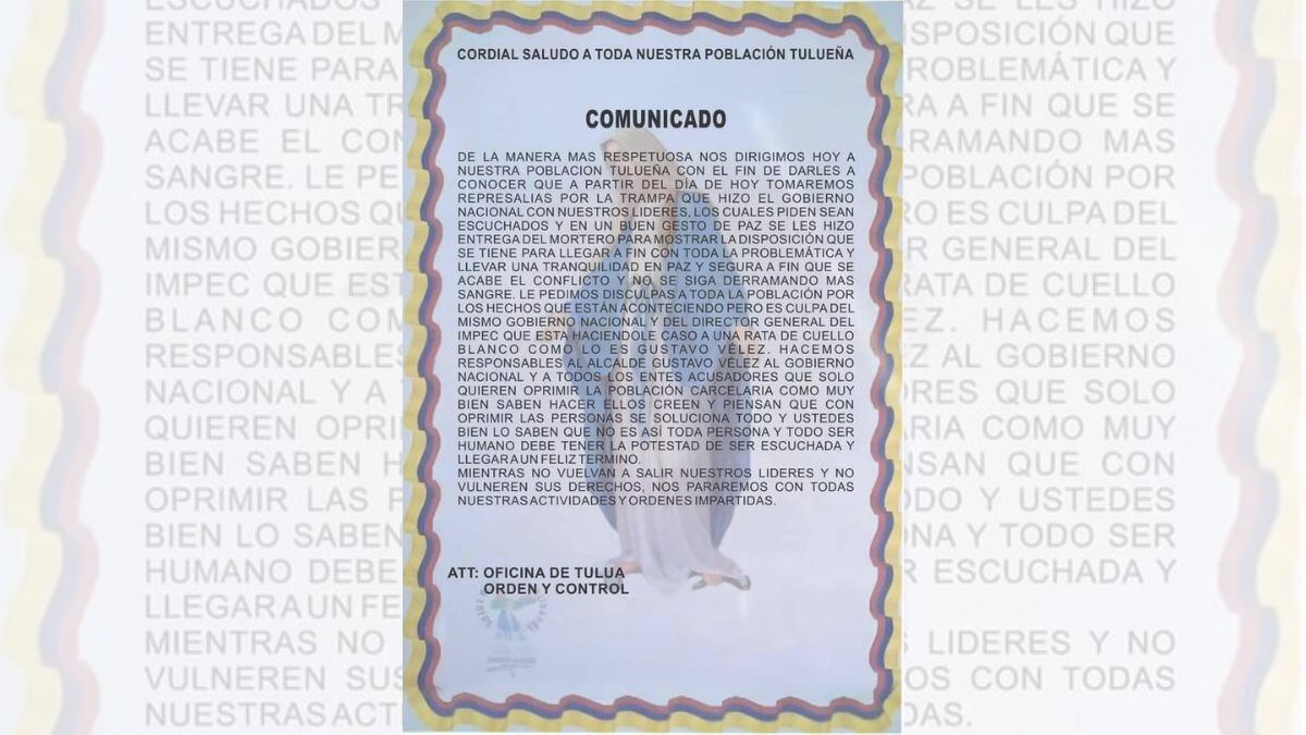 Un nuevo panfleto perteneciente a la organización criminal ‘La Inmaculada’ está rondando por las calles del corazón del Valle del Cauca, el municipio de Tuluá, en el que indican que sus miembros quieren ser escuchados por el Gobierno para ser parte de un proceso de ‘paz’ similar al que se está llevando a cabo en Buenaventura con los ‘Shottas’ y ‘Espartanos’.