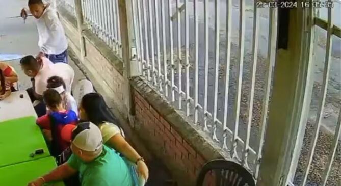 En el video grabado por la cámara de seguridad se puede observar cómo el hombre armado llegó y fue arrebatando el celular de las personas rápidamente, incluso sin medir palabra o importarle que fuese menor de edad, le arrebató la cadena del cuello a un niño. Sin ser suficiente, hizo parar a otro señor que se encontraba para revisarlo y cuando terminó de robar, siguió su camino como si nada, dejando a sus víctimas asustadas y esperando la presencia de las autoridades.