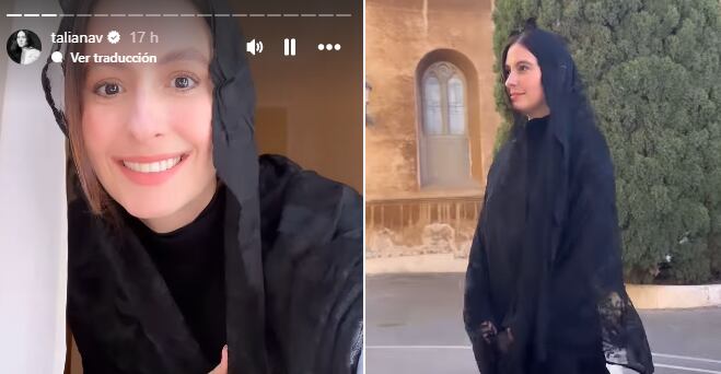 Justamente, a través de varias historias Taliana publicó el atuendo que luciría para el encuentro con el máximo jerarca de la Iglesia Católica, haciendo pruebas y finalmente eligiendo la mantilla que debía ponerse en la cabeza, que fue completamente de negra y escribió: “Mi primera vez usando mantilla” y en el video dijo: “Me fui por la negra, básica, casual. Me estoy poniendo este rosario en la mano para que esté bendecido. Voy a llevar una cartera llena de rosarios para regalar después con la bendición del Santo papa”.