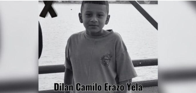 Dilan Camilo Erazo Yela, un niño de 10 años, fue asesinado mientras jugaba fútbol con sus amigos en una cancha sintética de Argelia, Cauca. El menor participaba en una semana cultural y recreativa cuando un tatuco, lanzado desde un dron, cayó sobre el escenario deportivo.