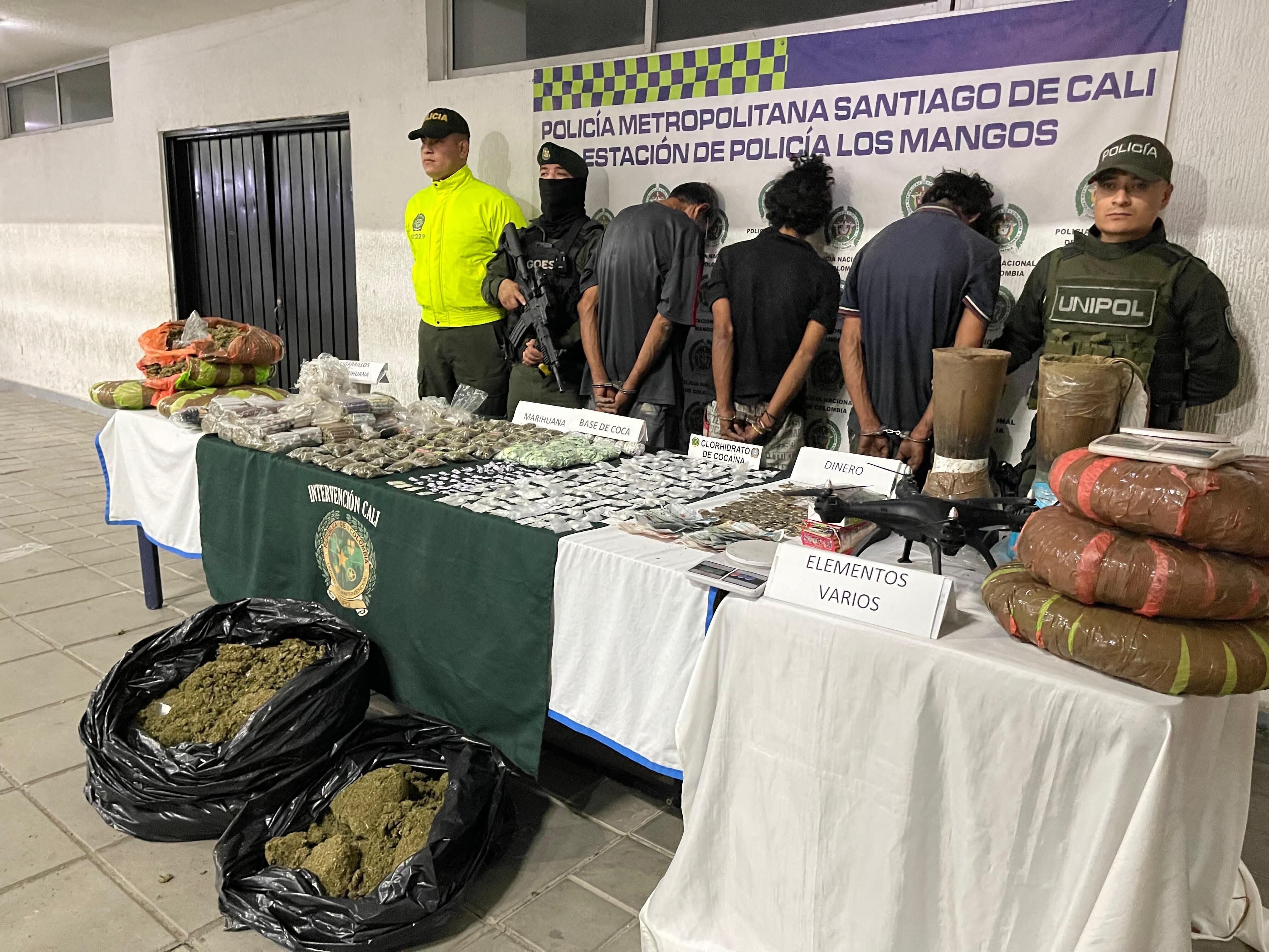 En la actividad operacional se incautaron 40.000 gramos de marihuana, más de 3.000 cigarrillos de marihuana, 560 gramos de bazuco, 175 dosis de cocaína, dinero en efectivo, materiales para la dosificación de la droga y un dron que, al parecer, era utilizado para monitorear la presencia Policial.
