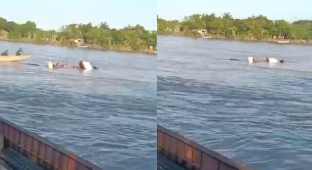 Un video que se ha difundido ampliamente en redes sociales muestra los angustiantes momentos en los que varios jóvenes que viajaban a bordo de la lancha deciden lanzarse al agua, al percatarse de que la embarcación comenzaba a hundirse. Entre gritos de alerta y el caos de la situación, los testigos presenciaron cómo uno de los ocupantes desapareció tras ser arrastrado por la fuerte corriente del río.
