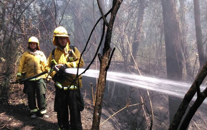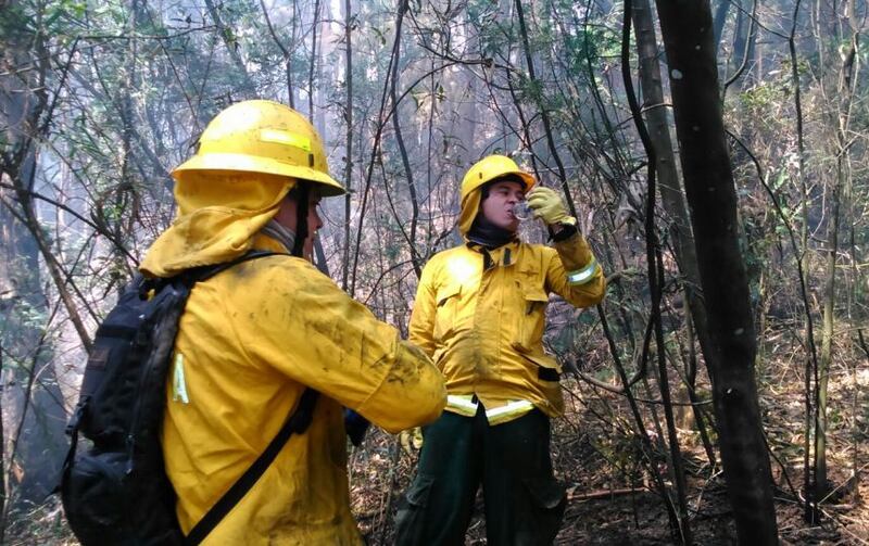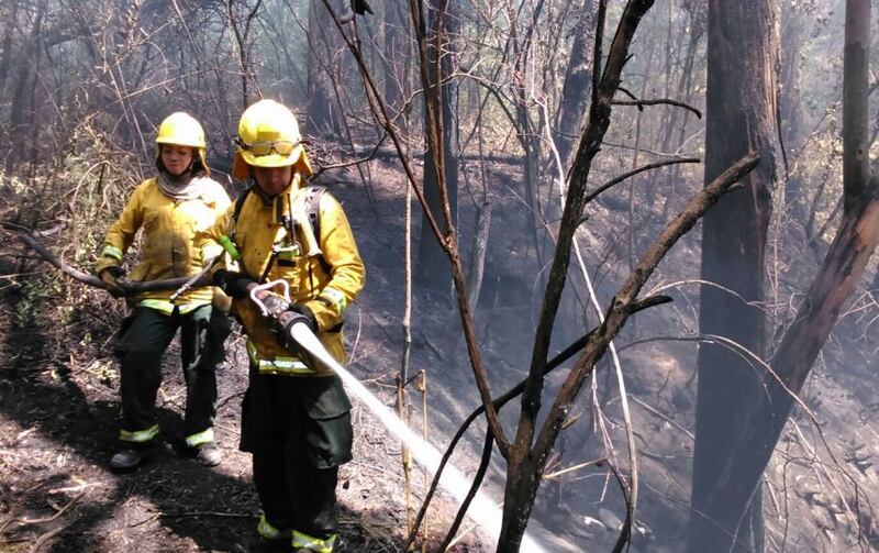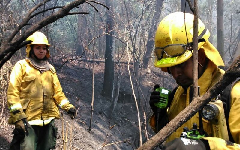 El teniente Jorge Enrique Loy, del cuerpo de bomberos dijo que se está combatiendo con «cuatro flancos, con 30 hombres del cuerpo de bomberos, tres máquinas y un carro tanque».