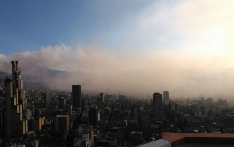 Los ciudadanos reportan que, debido a los incendios forestales que se han presentado en las últimas horas hay una nube de humo sobre el cielo bogotano.