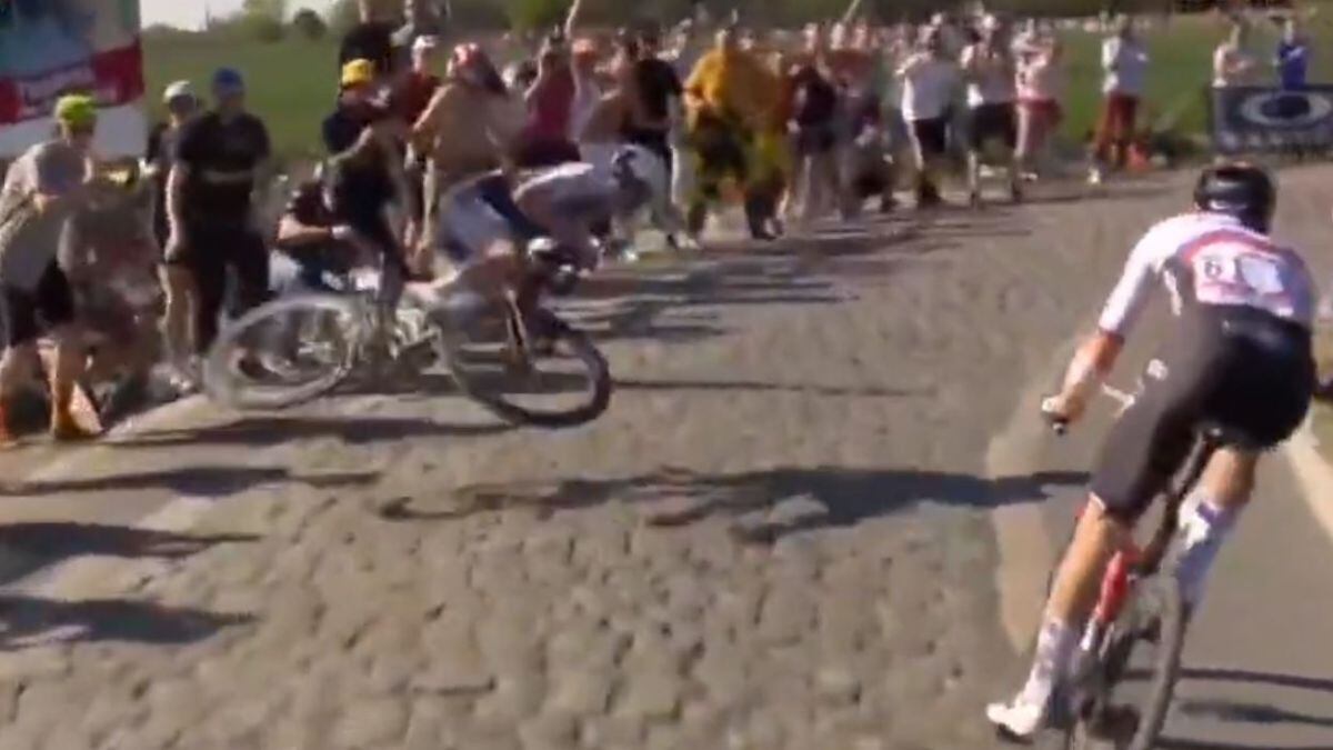 El corredor comandaba el grupo de persecución cuando un hombre al borde de la carretera lo hizo volar por los aires e impactar contra el suelo, luego de rozarlo mientras aplaudía al borde del camino. Al final, Lampaert cruzó la línea de meta en la décima casilla.