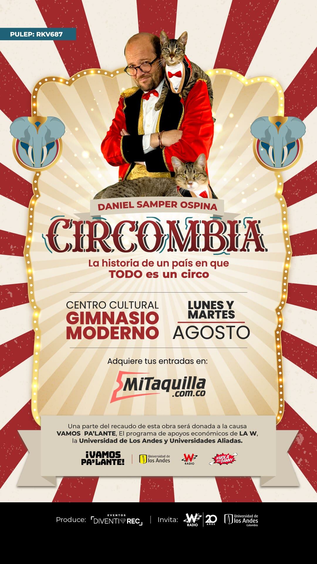 Bienvenido a Circombia, el país en el que todo es un circo: recorra lo mejor del repertorio de Daniel Samper Ospina y su humor corrosivo para reírse sin distingos ideológicos de líderes políticos y situaciones cotidianas que solo suceden en nuestro país. Un relato humorístico desde el gobierno del expresidente Álvaro Uribe Vélez hasta el de Gustavo Petro en el que abundan el sarcasmo y las carcajadas; una conferencia satírica tan completa como hilarante sobre nuestro ser colombiano cuyo mensaje final es evitar la polarización y comprender que los políticos pueden ser objetos de memes, pero no de peleas familiares.