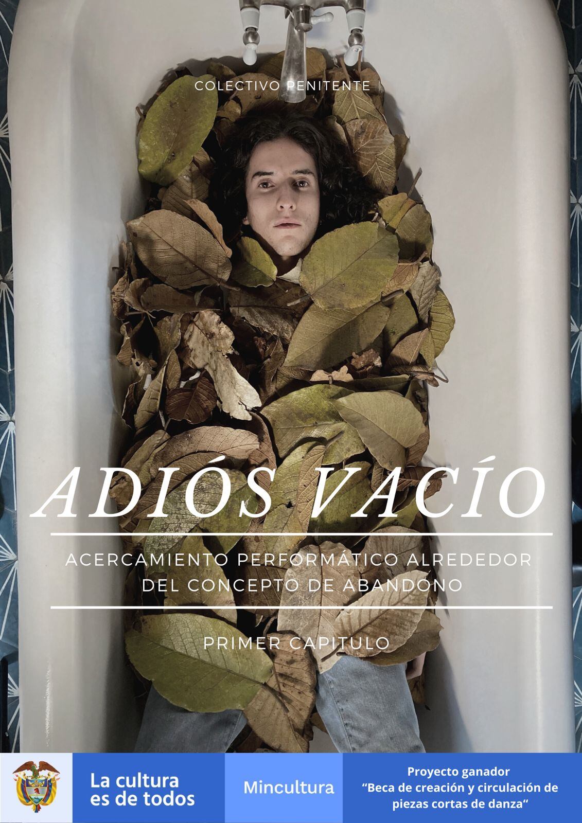 Adiós Vacío, hace parte de la serie de video-danza “Acercamiento performático al concepto de abandono” del colectivo emergente PENITENTE, bajo la dirección de Natalia Vasco y Marino Cuenca, protagonizada por el artista Federico Bautista Forero. Esta ganó la beca de estímulos de creación y circulación del Ministerio de Cultura.