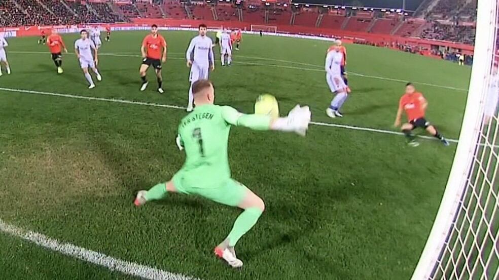 El héroe fue Marc-André ter Stegen, quien hizo una atajada que solía hacer tiempo atrás, pero que últimamente no se le veían. Ante el remate de Jaume Costa, con una mano y toda la plasticidad, el alemán salvó la victoria culé.