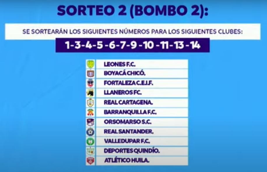 El escudo Unión Magdalena, que tuvo un resonado ascenso a final del año anterior, apareció en la gráfica de la distribución del bombo 2 en lugar del de Atlético Huila que este año jugará en la B.
