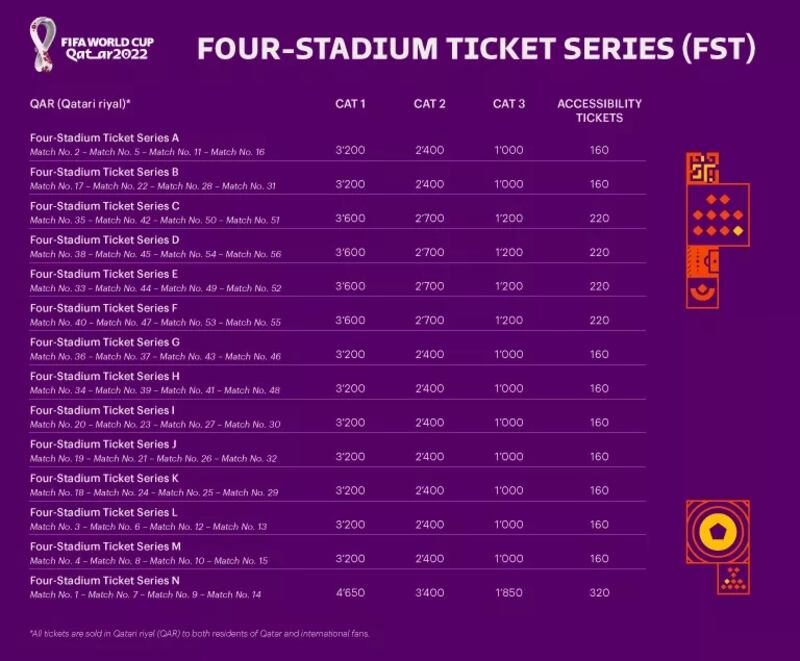 Tenga en cuenta que la categoría de entrada 4 solo está reservada para los residentes de Qatar* (para todas las ventas en línea, en el momento del pedido, cada solicitante de entrada debe proporcionar la dirección nacional de su residencia en Qatar, así como su número QID).