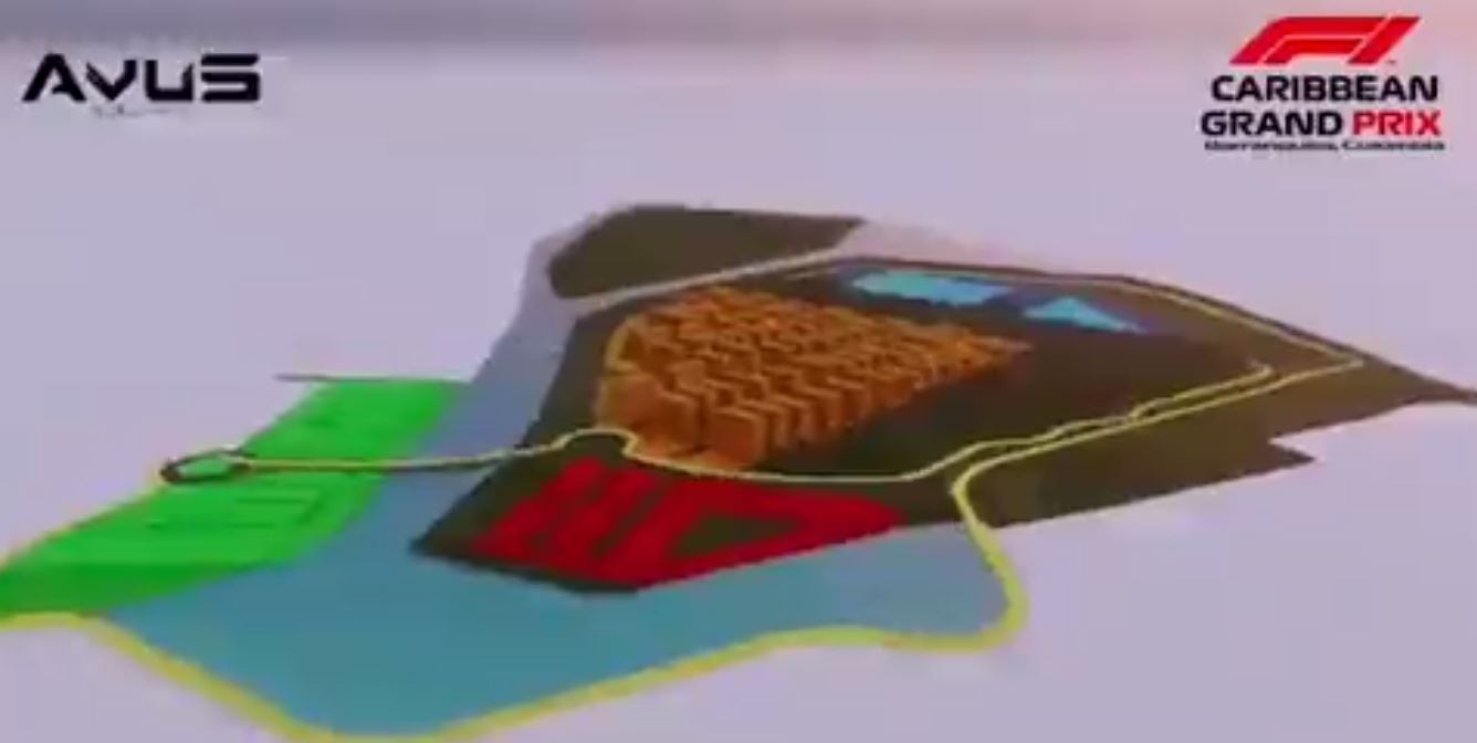 En las imágenes se revela, entre otros, el nombre del circuito que se llamaría “Gran Premio del Caribe” y se deja ver el circuito que se construiría.