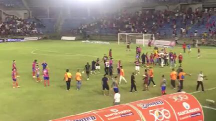 Una completa pena. La invasión de hinchas del Unión Magdalena dio la vuelta al país y generó indignación entre la comunidad, por lo que incluso algunos desadaptados buscaban agredir a los propios jugadores locales en la derrota de su equipo 0-1 frente a Atlético Bucaramanga.