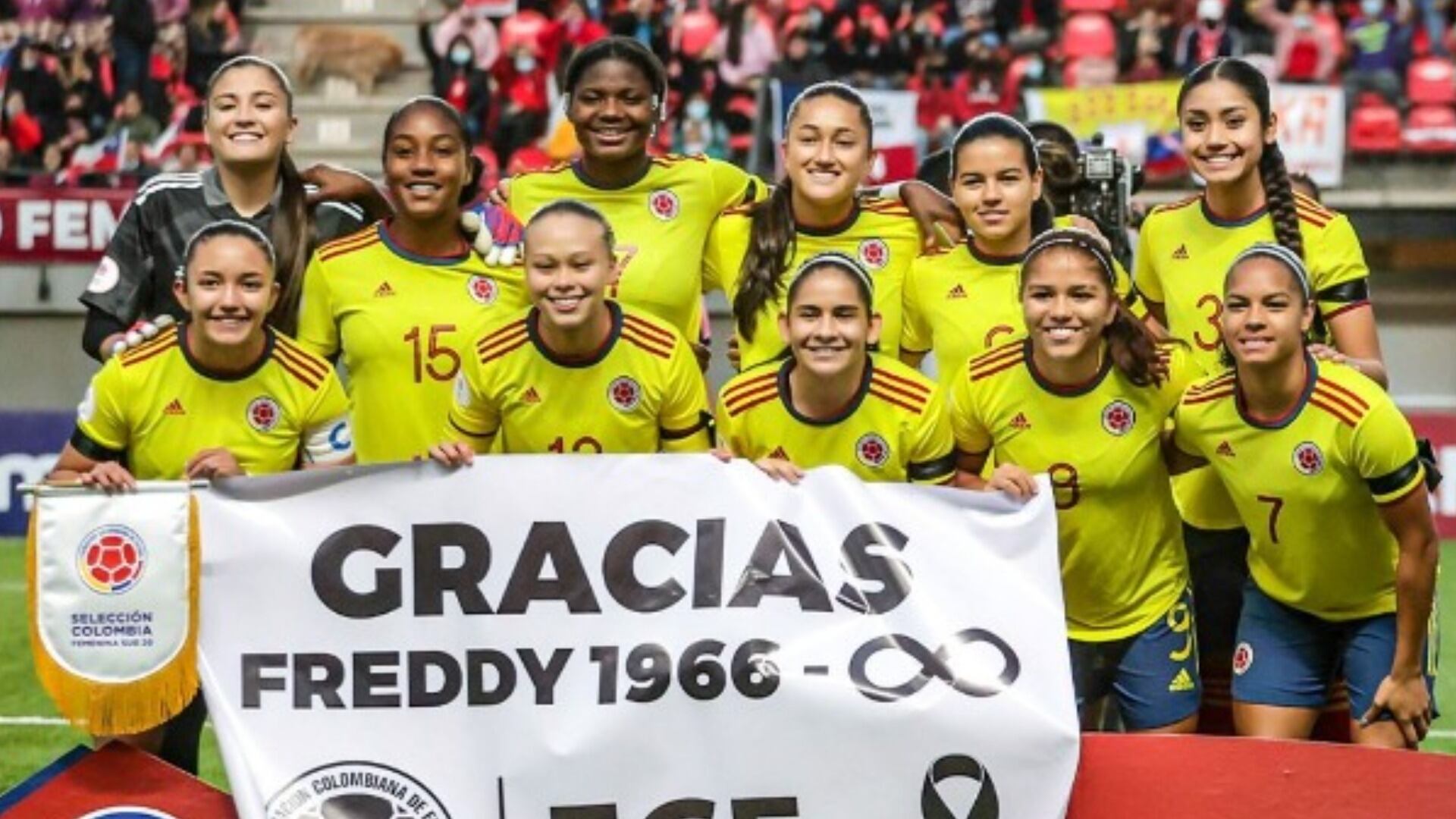 Antes del inicio del partido, las jugadoras de ‘la Tricolor’ rindieron un homenaje a Freddy Rincón. Mientras entonaban el himno nacional, ellas sostuvieron una pancarta con la que agradecieron al ‘Coloso’ por su enorme legado para el FPC: