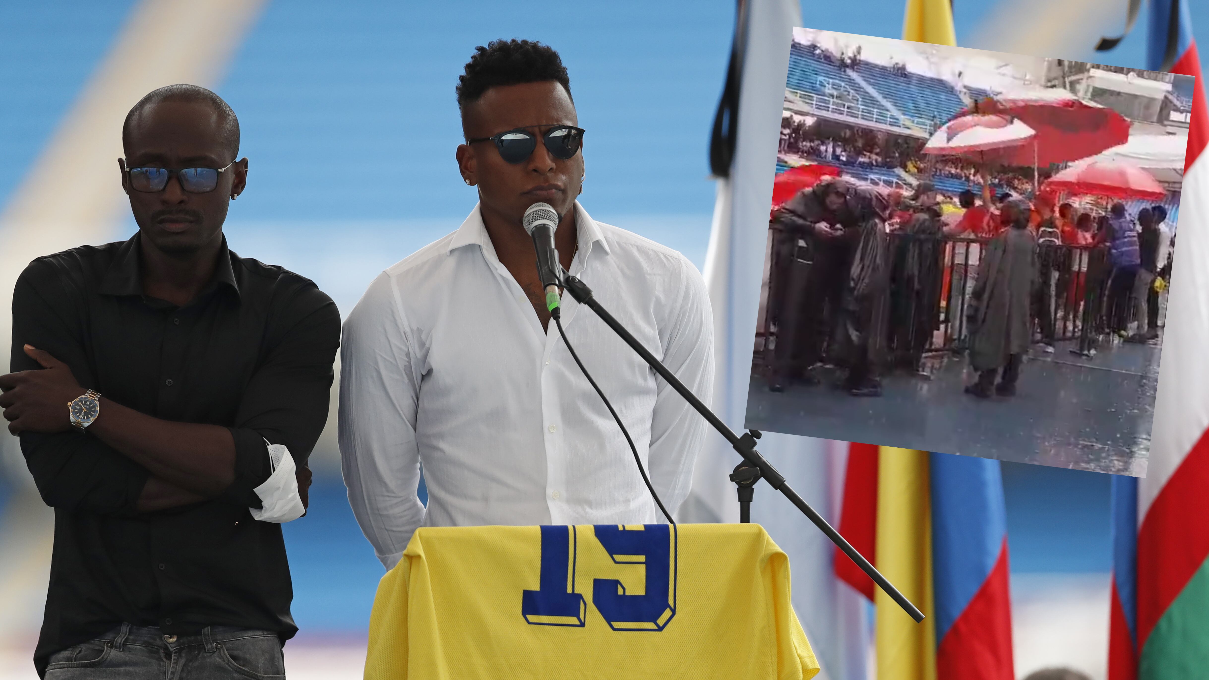 Sebastián y Fredy Stiven Rincón, sus hijos, aprovecharon la oportunidad para compartir con los aficionados que permanecían en el Estadio Olímpico Pascual Guerrero. Juntos empezaron a cantar y a saltar, sin importar el torrencial aguacero de una melancólica tarde sabatina.