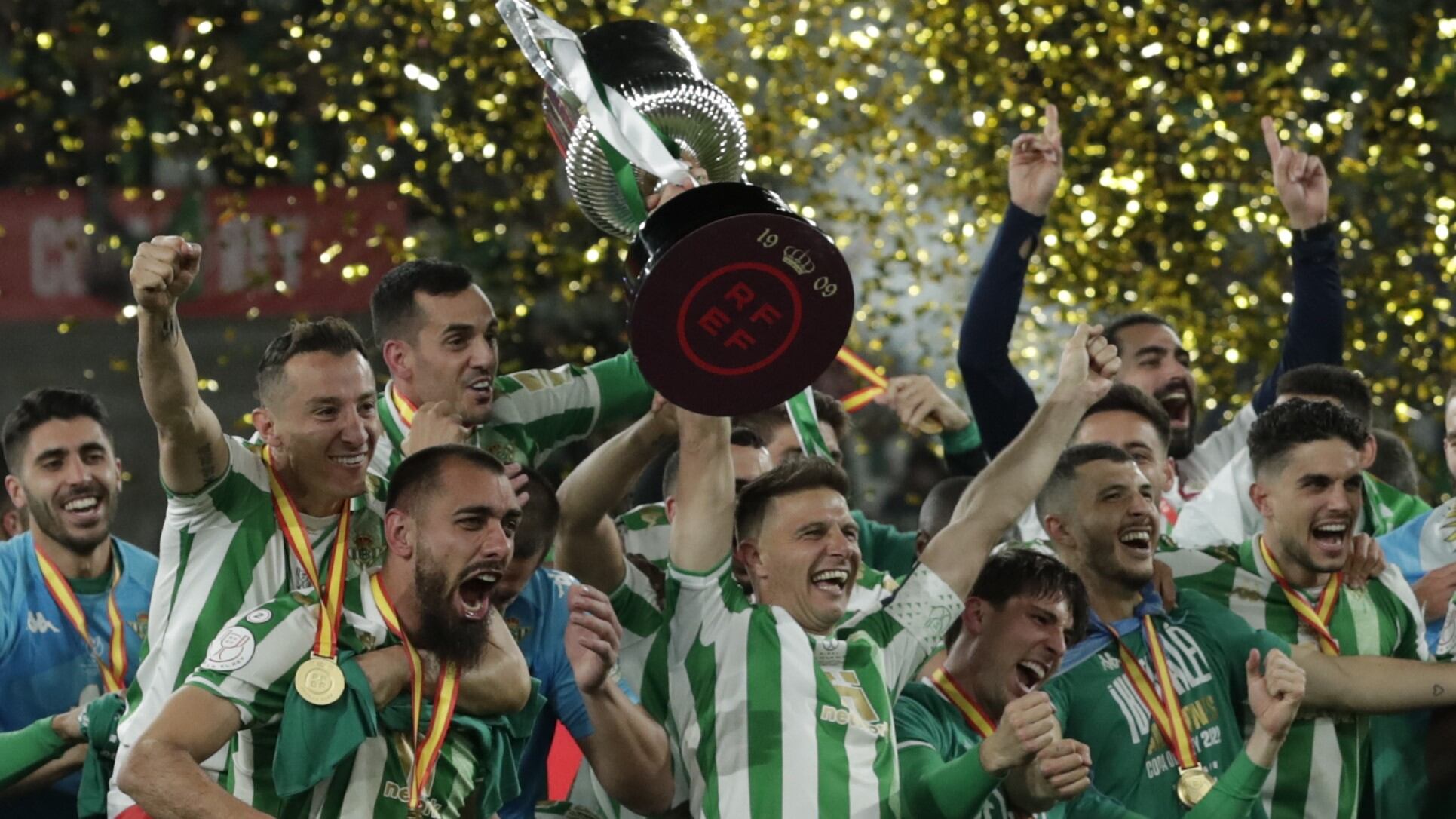 Sevilla (España), 23 abr (EFE).- El Betis, diecisiete años después de su último título (2005), alcanzó otra vez la gloria al proclamarse campeón de la Copa del Rey de 2022 y lograr su tercera corona al superar al Valencia en la tanda de penaltis, con un lanzamiento decisivo del canterano Juan Miranda, después de una final que acabó 1-1 en el tiempo reglamentario y en la prórroga.
