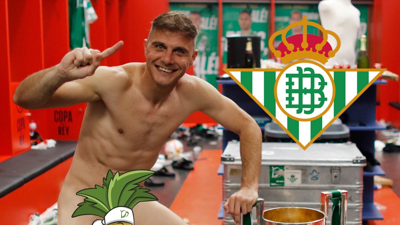 Más que promesa, se trataba de una cábala. El único jugador con dos títulos en el Betis, a lo largo de la historia, posó así en 2005 cuando los verderones le ganaron la Copa al Osasuna. Ahora, tras vencer al Valencia, Joaquín volvió a aparecer desnudo en el vestuario del Betis. El mismo club subió la foto a sus redes sociales.