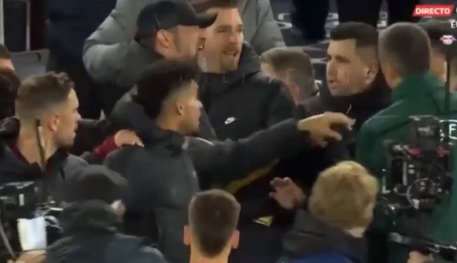 Las imágenes mostraron en primera medida al capitán de los Reds, Jordan Henderson, junto con su entrenador, Jürgen Klopp, encarados a hombres del Villarreal, mientras el cuarto hombre trataba de mediar.
