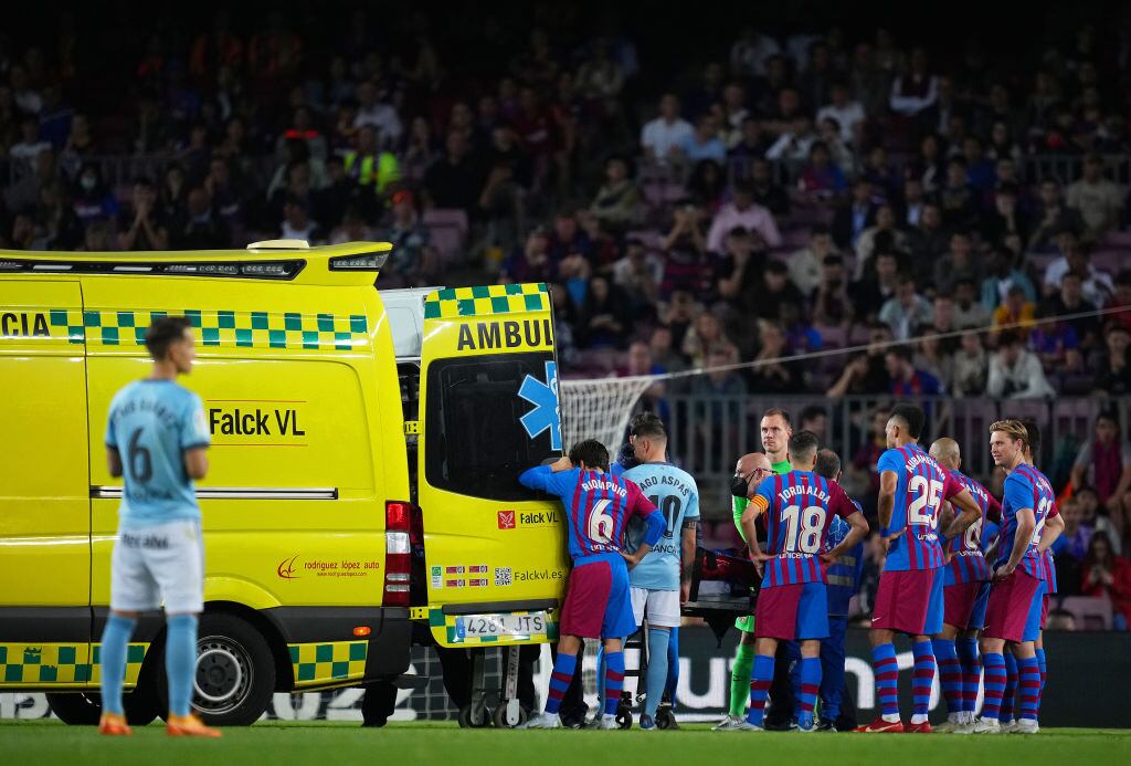 El central uruguayo del Barcelona Ronald Araujo tuvo que ser evacuado en ambulancia con una contusión en la cabeza durante el partido ante el Celta en el Camp Nou.