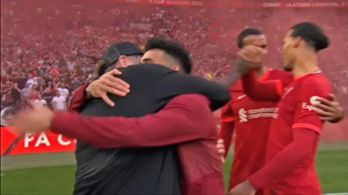 Luis Díaz fue uno de los jugadores más destacados en la final de la FA Cup y su entrenador, Jürgen Klopp así lo evidenció en el festejo del título.