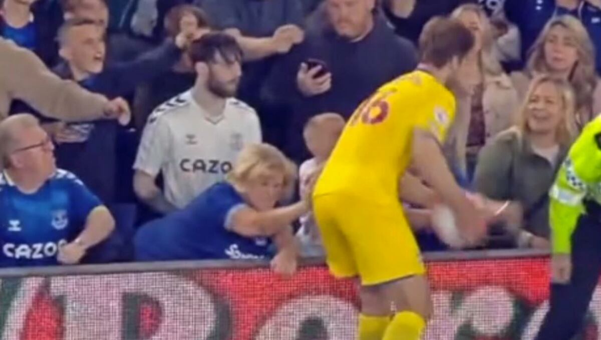 Una aficionada del Everton protagonizó una de las escenas más curiosas del fútbol en los últimos tiempos al terminar reprendiendo a un futbolista en pleno partido.