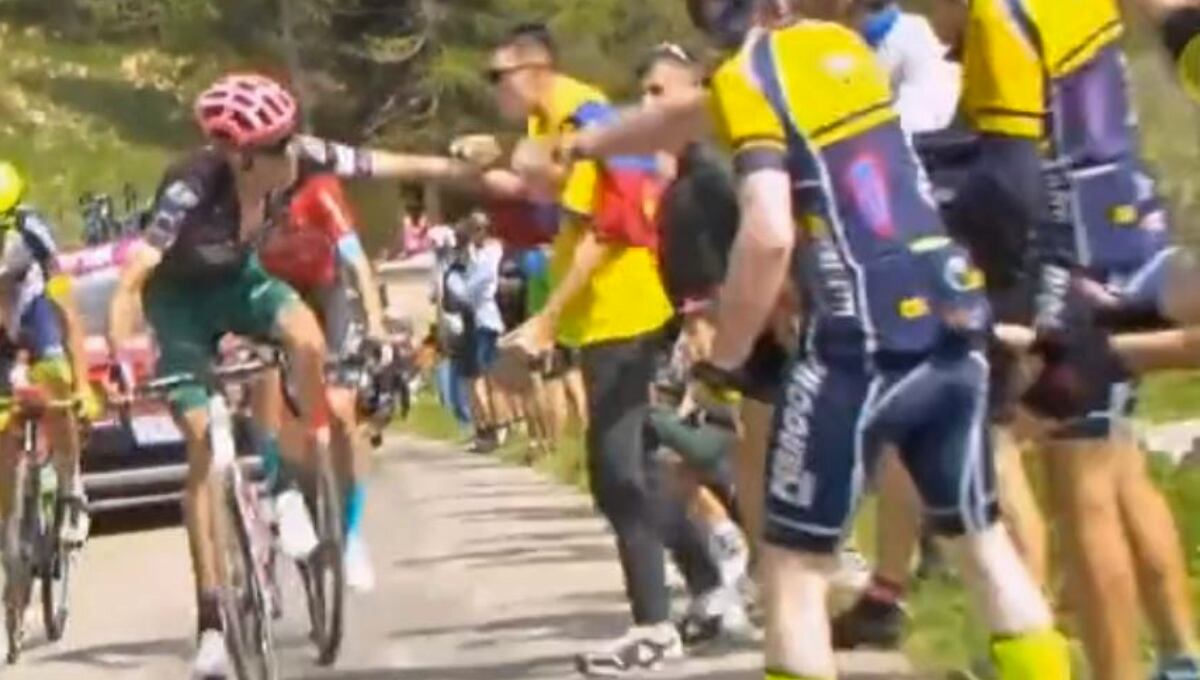 Precisamente en uno de los puertos del día, el mítico Mortirolo, se dio la calentura del corredor británico con el aficionado colombiano.