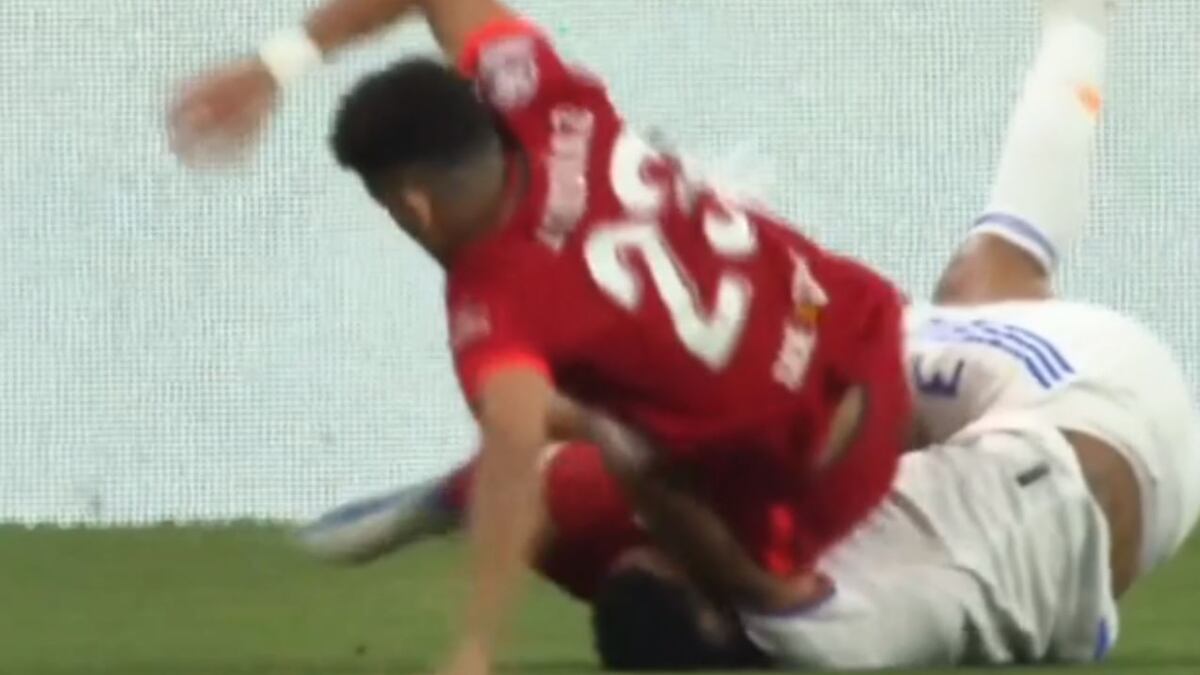 De inmediato, Militao se mandó la mano al rostro en señal de que lo había golpeado con su zapato, intentando que por lo menos amonestaran a Díaz, pero el árbitro no compró la simulación.